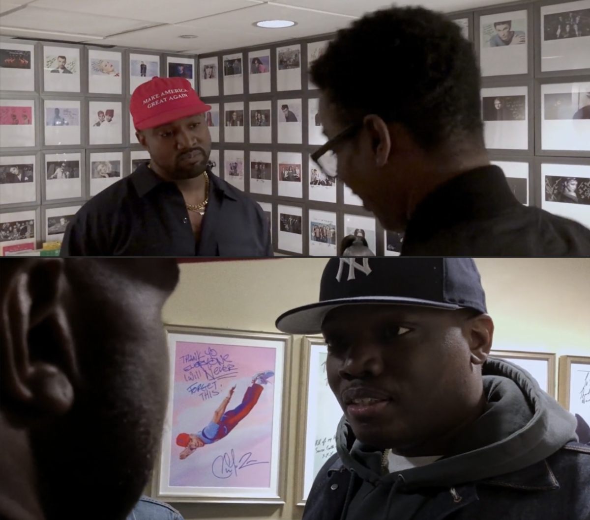 This scene was one of my favorites, not really because of all the minor details and undertones, and who is endorsing who, whatever. But because of camaraderie that is directly juxtaposed to the Michael Che confrontation. Chris Rock is embracing all of Kanye, seeing a friend in distress, in transition, and in hesitant commitment to his message. No matter what, he is here to support him because he knows him and knows his intentions aren’t made in malice. Instead of questioning, Chris simply uplifts. Right or wrong.